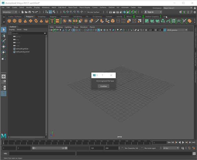 之前用Maya可以正常导入FBX类型模型文件,突然Maya无法导入FBX文件报Unrecognized file type错误(无法识别的文件类型)。