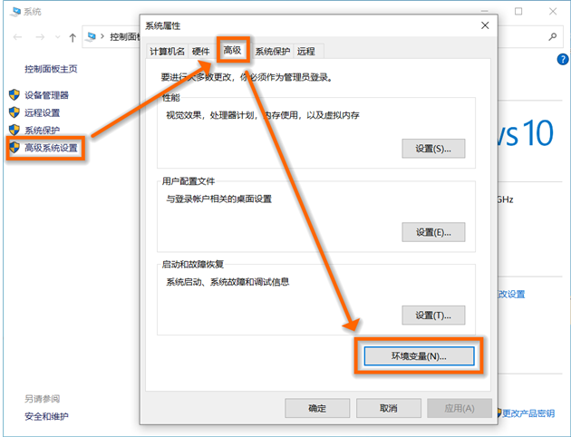 █ 步骤4-2: 接上步骤,左侧点击“高级系统设置”:高级——环境变量